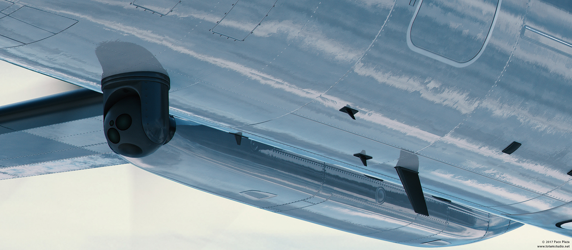 Customized surveillance and observation 3D CGI aircraft rendering for product presentation, customized customer product preview and marketing material. Client: PAL Aerospace Art Direction/3D CGI: Paco Plaza