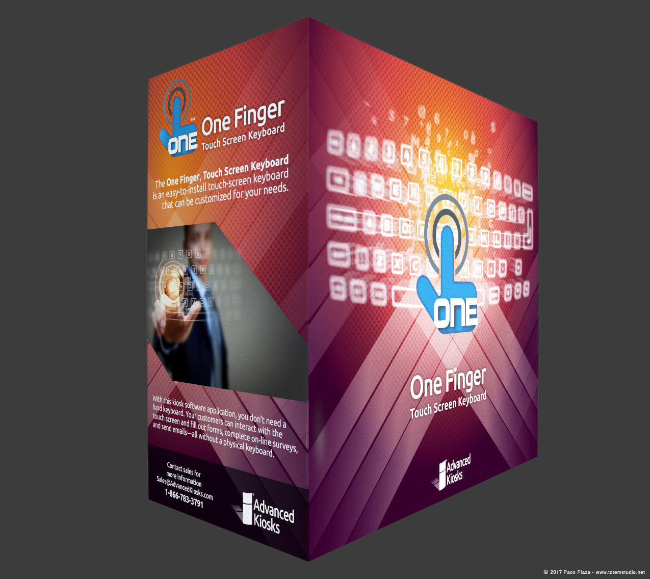 Touch screen keyboard software logo and e-packaging graphic design. Client: Advanced Kiosks Art Direction/Graphic Design/3D CGI: Paco Plaza