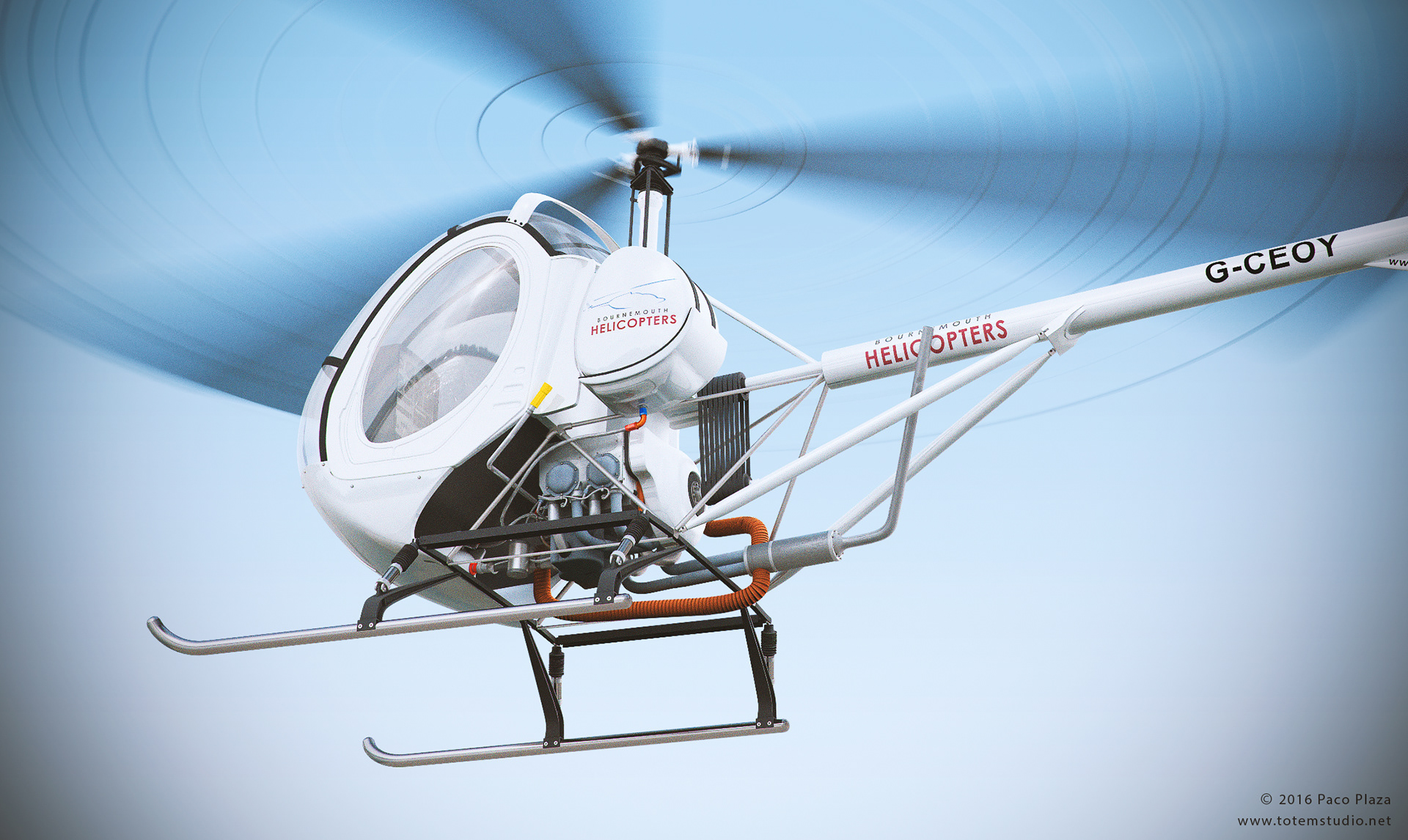 Technical helicopter 3D CGI rendering artwork for training and manuals printed and online material. Client: Bournemouth Helicopters Art Direction/3D CGI: Paco Plaza